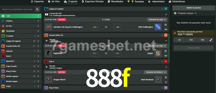 O 888f oferece uma grande seleção de opções de apostas em e-sports com probabilidades competitivas